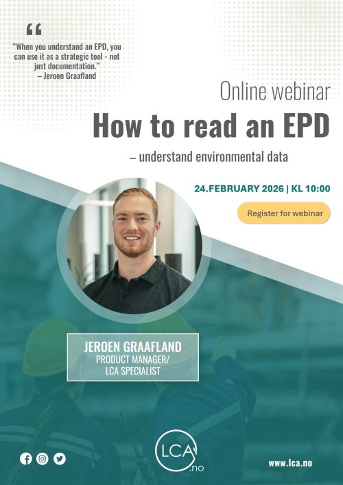 In this 45-minute webinar, Jeroen Graafland, Product Manager and LCA Specialist at LCA.no, will explain how to read an EPD in practice and understand the information it contains.