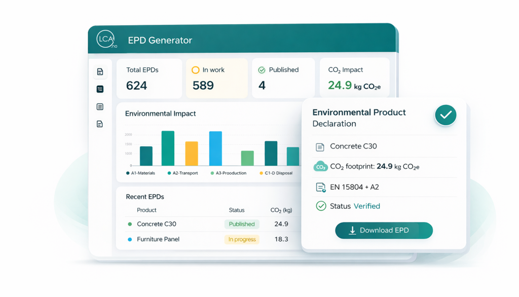 EPD-generatoren fra LCA.no hjelper produsenter med å samle data, strukturere beregninger og utvikle EPD-er på en mer effektiv måte.